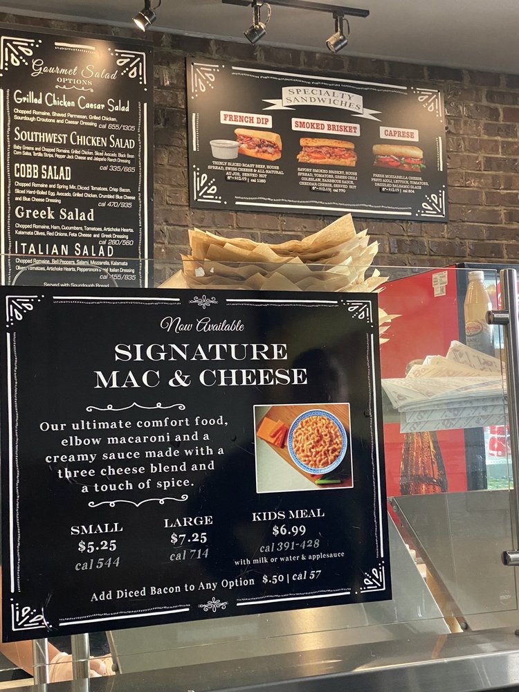 Small size mac and cheese served with applesauce and your choice of milk, water, juice or chocolate milk to drink. milk brand may vary from store to store.
